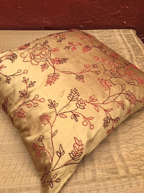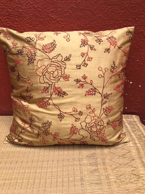 Dupion silk cushion covers are designed with a soft floral pattern inspired by nature.Fine and delicate hand embroidery is done by our Gypsy community.
