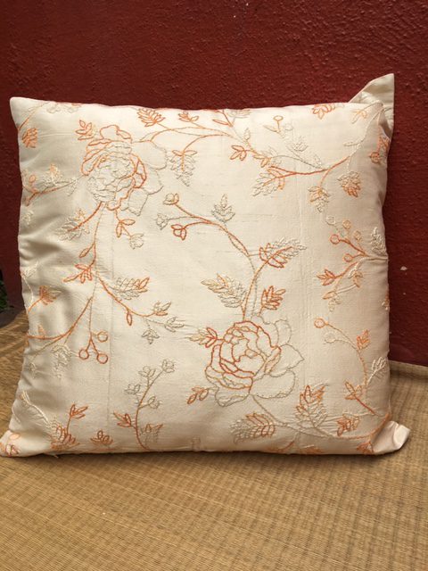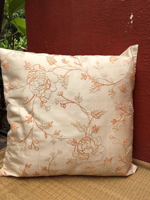 Dupion silk cushion covers are designed with a soft floral pattern inspired by nature.Fine and delicate hand embroidery is done by our Gypsy community.